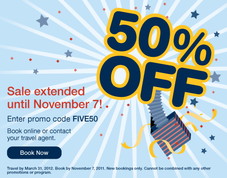 Make your bookings before November 7, 2011 for any flight up to March 31, 2012.
